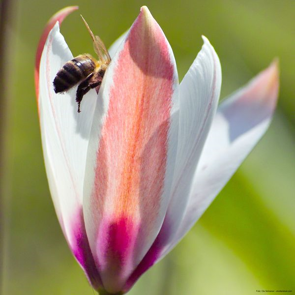 Die sogenannten botanischen Tulpen, auch Wildtulpen genannt, ziehen Bienen magisch an. Im Garten benötigen Sie einen warmen und sonnigen Platz, da die Zwiebeln nach der Blüte kaum Feuchtigkeit vertragen. Die Weinberg- oder Wilde Tulpe (Tulipa sylvestris) blüht goldgelb und duftet süßlich.