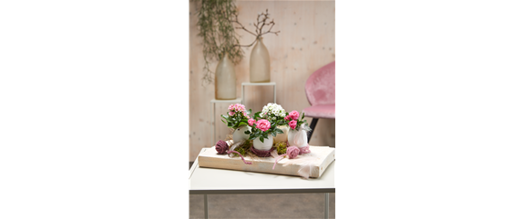 Blumige Ostern – der Name ist dieses Jahr Programm. Blühende Zimmerpflanzen setzen Highlights. Verschiedene Blütenformen bringen bunte Vielfalt auf den Ostertisch. In Kombination mit einigen Grünpflanzen leuchten die bunten Farben der Blüten noch intensiver. Kombinieren Sie nach Lust und Laune!