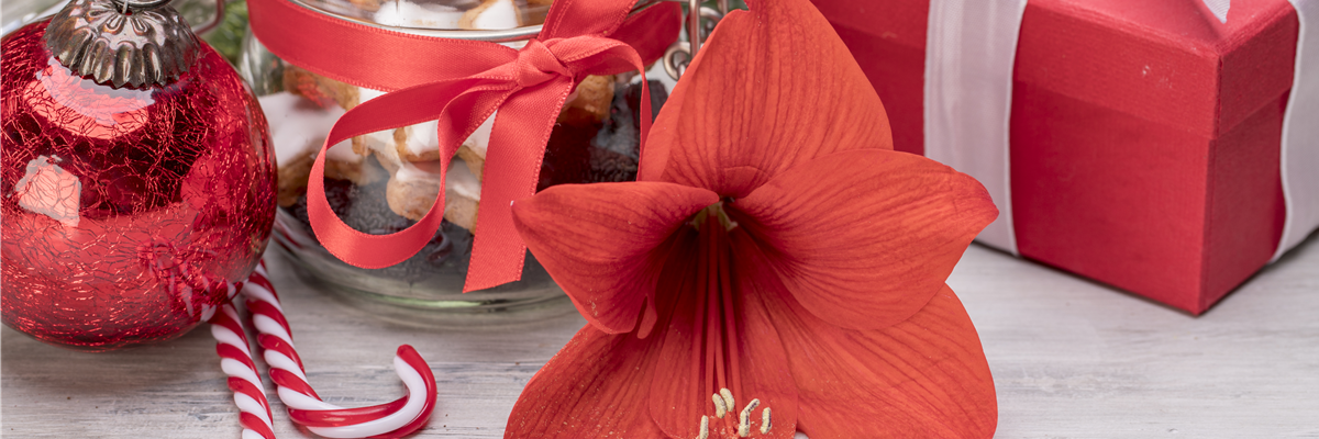 Weihnachtliche und abwechslungs-reiche Dekorationen mit der Amaryllis (Hippeastrum-Hybride) und eine schöne Beleuchtung in den eigenen vier Wänden sorgen für warme Gemütlichkeit. Wir zeigen Ihnen, wie Sie mit der Amaryllis dekorieren und mit Licht eine behagliche Weihnachtsstimmung in jedes Zimmer zaubern.