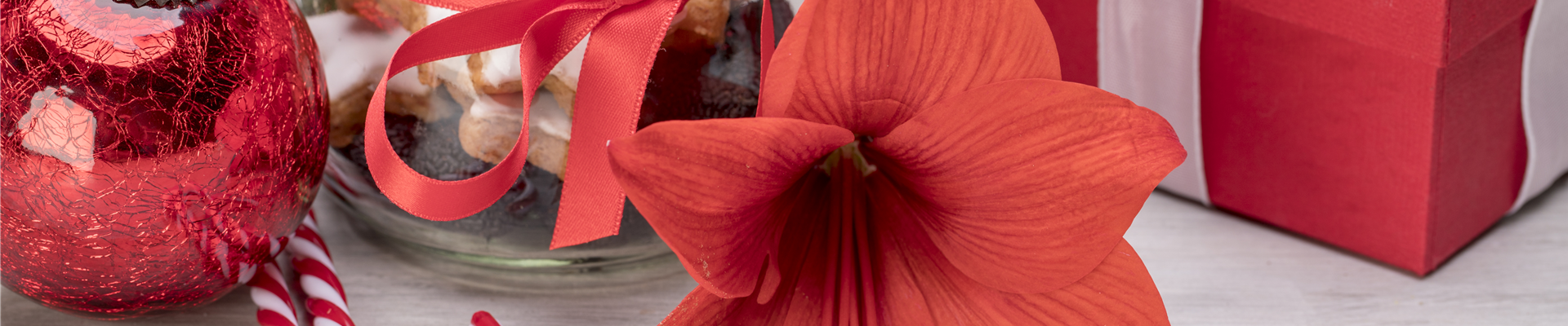 Die Amaryllis, auch Ritterstern genannt, hat eine unvergleichliche Ausstrahlung. Aufgrund ihrer stattlichen Größe lässt sie sich abwechslungsreich gestalten und passt mit ihren Blütenfarben in jede weihnachtliche Dekoration. Neben den klassischen Weihnachtsfarben Weiß und Rot gibt es sie auch in Lachs, Rosa, Orange und Hellgrün. Die rote Amaryllis fällt auf und setzt ein starkes Statement. In einer helleren Blütenfarbe, z. B. in Weiß, wirkt die Amaryllis rein wie Schnee und entfaltet somit ihren winterlichen Charakter. Aber egal, für welche Blütenfarbe Sie sich entscheiden, die Amaryllis gehört zu den beliebtesten Zimmerpflanzen im Winter, ist gleichzeitig ein außergewöhnlicher Hingucker in der Advents- und Weihnachtszeit und ein beliebtes Dekoobjekt.