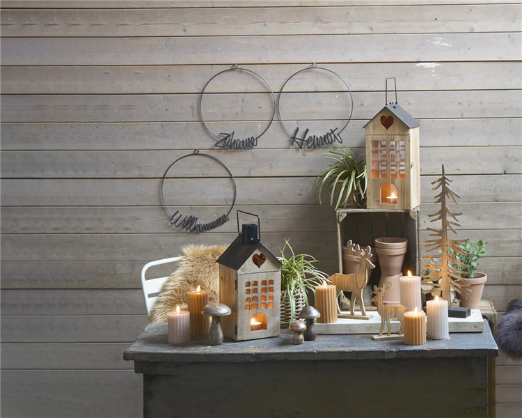 Wenn der Herbst Einzug hält, bereiten wir uns langsam auf die kältere und graue Jahreszeit vor. Dennoch müssen Sie nicht auf eine gemütliche Umgebung verzichten. Wir stellen Ihnen einige dekorative Ideen in den Trendfarben des Herbstes für Balkon und Terrasse vor. Die Laternen aus Holz und Metall im angesagten Häuschen-Look verströmen viel Liebe zum Detail. Die LED-Kerzen aus Wachs in verschiedenen Größen und Farben ergeben sowohl einzeln als auch als Duo oder Trio ein wohliges Licht. Suchen Sie sich Ihre Lieblingsfarbe aus und dekorieren Sie es sich gemütlich. Zum Herbst gehören Pilze einfach dazu. Diese Pilze aus Mango-Holz fühlen sich überall wohl. Sie sind ein schönes Geschenk für sich selbst oder für Familie und Freunde. Hirsche aus Holz in unterschiedlichen Größen ergeben zusammen mit den Pilzen und Bäumen eine gemütliche, herbstliche Waldatmosphäre. Trendige Türanhänger aus Metall heißen Ihre Gäste u.a. „Willkommen".