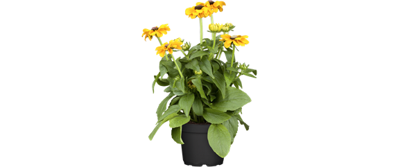 Der Sonnenhut (Rudbeckia hirta) bringt gute Laune ins Beet und blüht von Mai bis September. Er ist pflegeleicht und aus vielen alten Bauerngärten bekannt. Aber auch heute ist die gelb- und orangefarbene Schönheit im Kübel oder Beet nicht mehr wegzudenken. Wie der Name schon vermuten lässt, mag es diese Pflanze sonnig und erreicht eine Höhe von ca. 1 m.